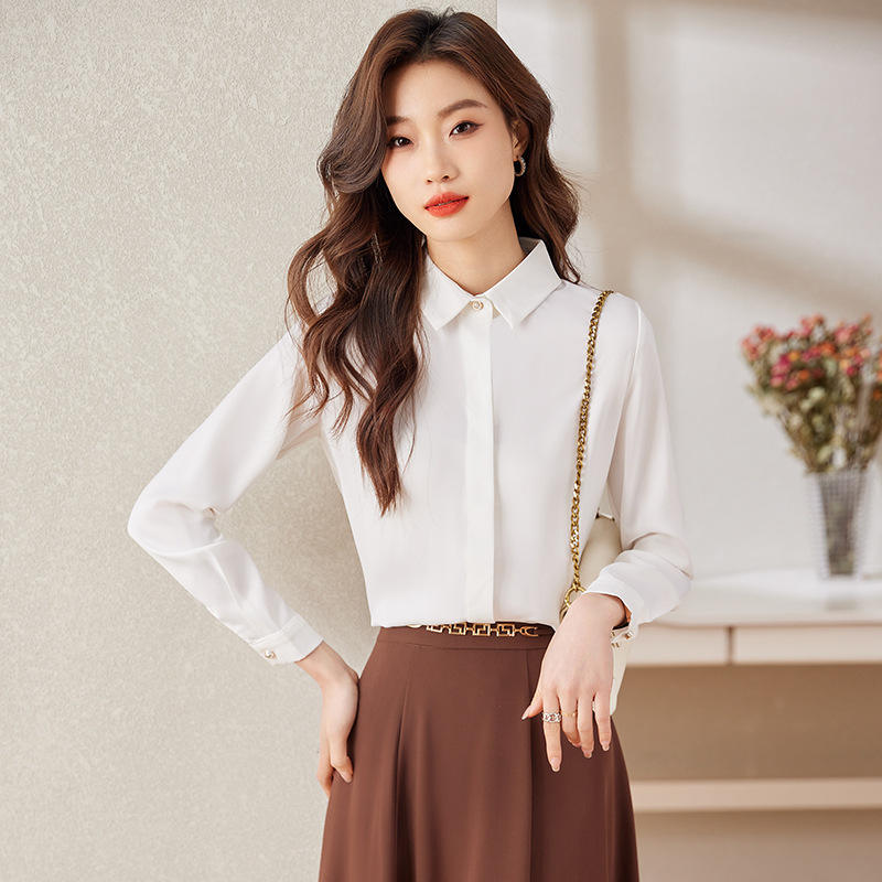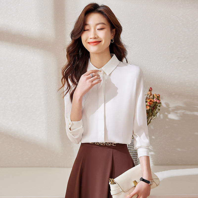 Women's Solid Color Suit Set With Base Shirt Autumn Long Sleeve Blue Polyester Satin Fabric