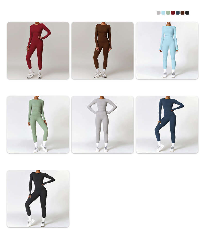Conjuntos Deportivos de Mujer con Patrón Sólido, Alta Elasticidad, Spandex/Poliéster, Shorts de Gimnasio, Top de Manga Larga, Cintura Alta, para Fitness, Yoga y Deportes