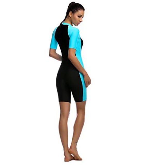 Traje de baño deportivo con cremallera frontal a cuadros para mujer, traje de baño atlético de manga corta de una pieza, transpirable, Anti-UV, de secado rápido Plus
