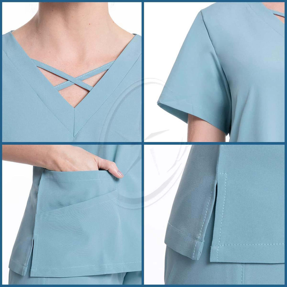 Conjunto de exfoliante elástico sólido para mujer, de bolsillo con cuello en V Top, verano, uniforme médico transpirable, pantalones para correr, trajes de enfermería