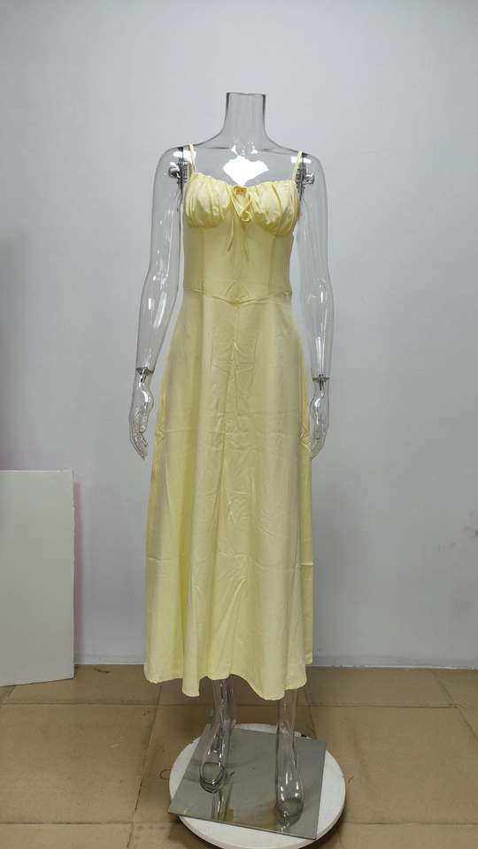 Vestido maxi de tirantes finos con fruncido en el busto y lazo frontal para mujer, vestidos de noche, moda femenina