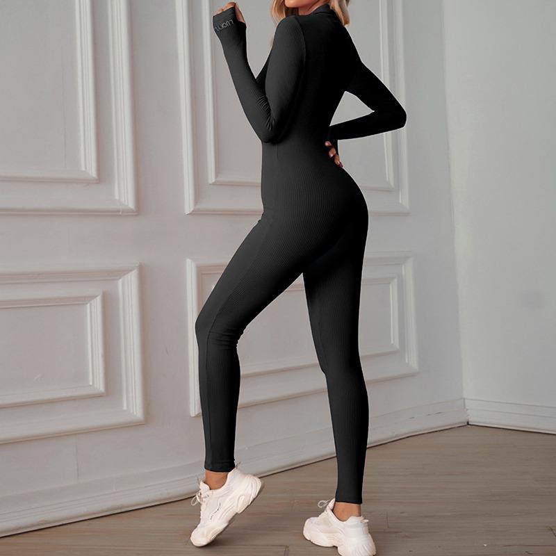 Mono deportivo acanalado ajustado para mujer, sexy, para fitness, yoga, manga larga, con cremallera, informal