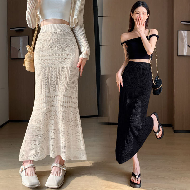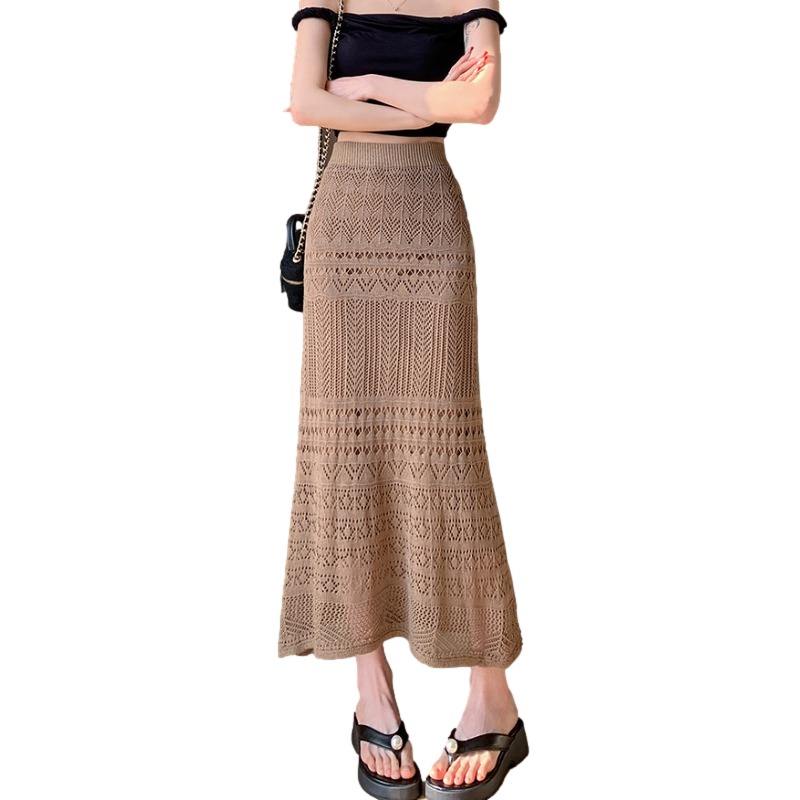 Falda Midi Casual de Cintura Natural para Mujer, Diseño de Encaje Tejido, Color Albaricoque, Transpirable, para Primavera/Verano, Marca Dushan