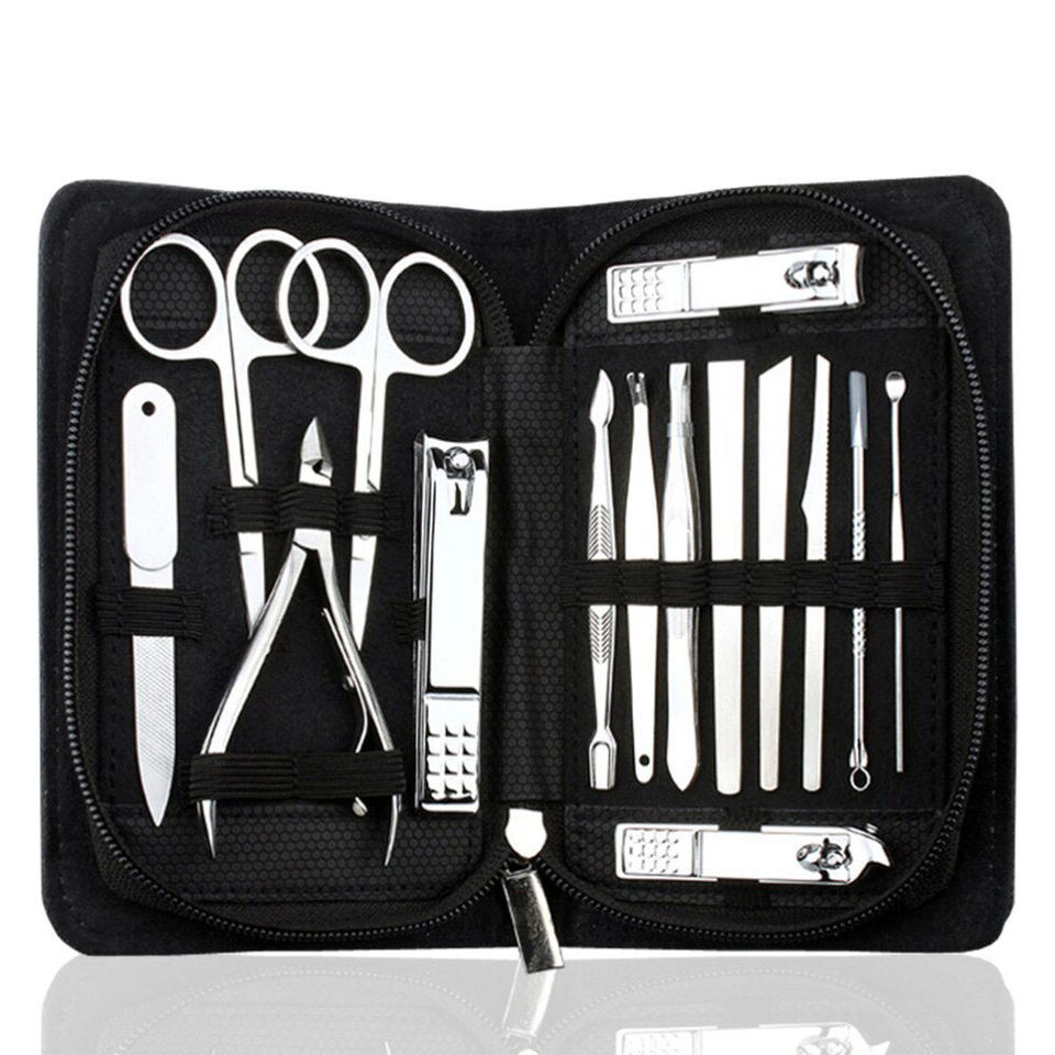 Juego de manicura y pedicura de acero inoxidable para mujer, kit de aseo con cortaúñas y herramientas de cuidado
