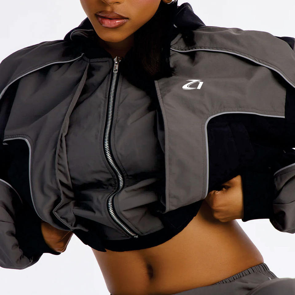 Chaqueta Corta Impermeable para Mujer, Cómoda y Resistente, de Microfibra de Poliéster, con Cierre de Cremallera, Cortavientos, con Capucha, Tallas Grandes