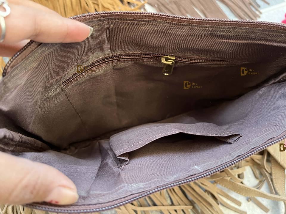 Bolso cruzado de cuero de gamuza con estilo para mujer con cierre de cremallera con flecos Monederos de nuevo diseño hechos a mano Venta caliente