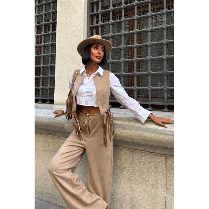 Conjunto de chaleco de gamuza para mujer con borlas 10273