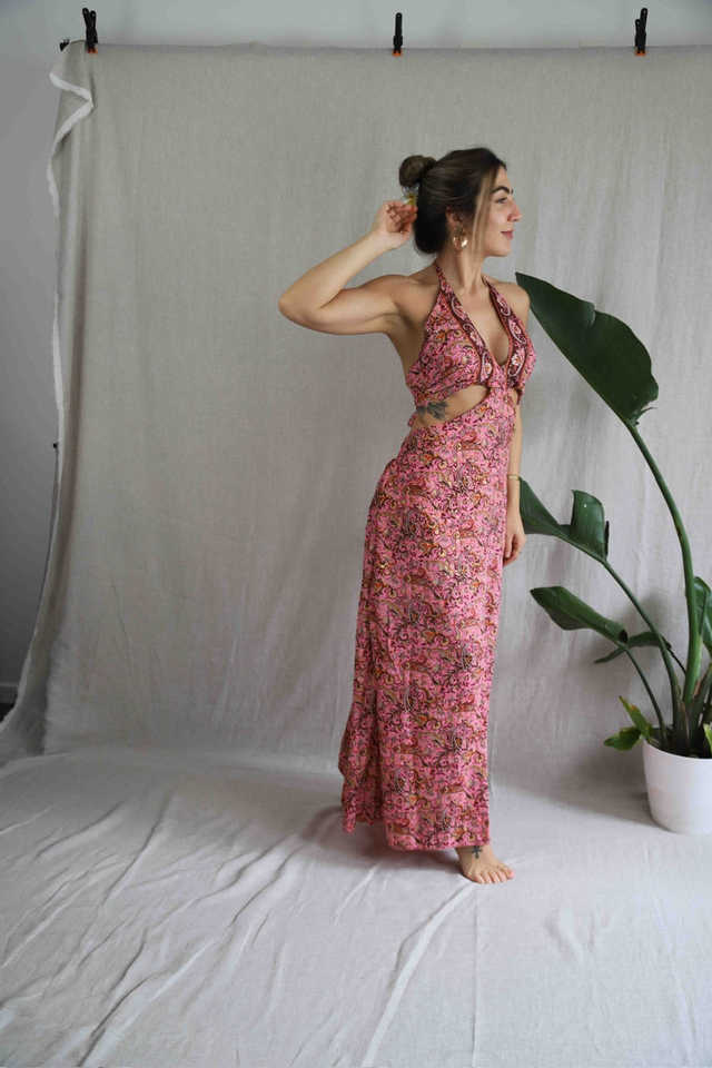 Vestido bohemio de verano para mujer, estampado Floral, tirantes finos, cuello en V, vestido Maxi fruncido, vestidos de playa, ropa para mujer, estampado Floral