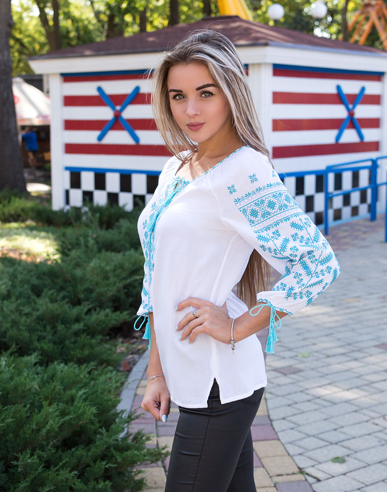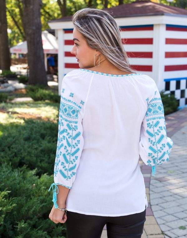 Blusa elegante bordada con cuello en V para mujer, verano, algodón, lino, ajustada, estampado de moda, informal, Logo, borla para fiestas, Boutique