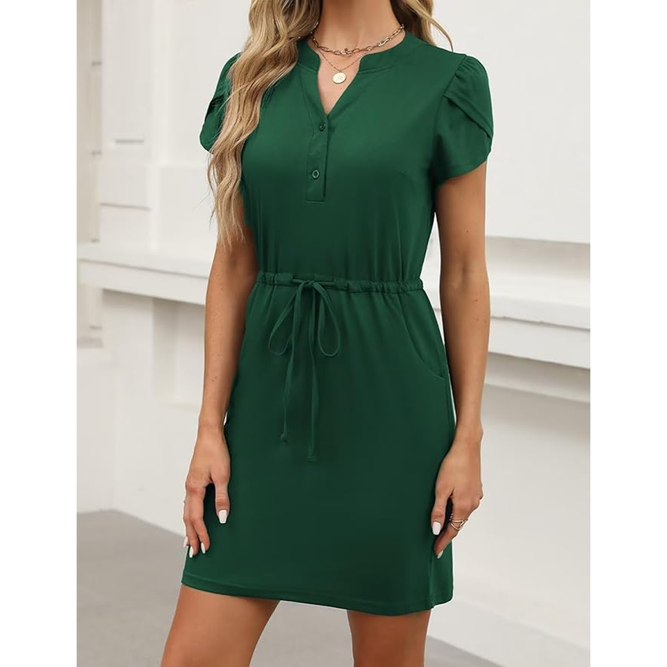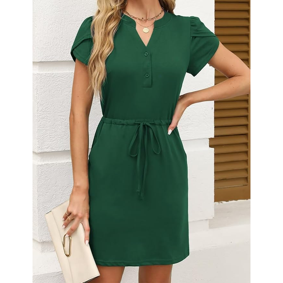 Vestidos formales largos de manga corta con cuello en V de verano para mujer, camiseta de manga media, vestido con forro A de manga coreana