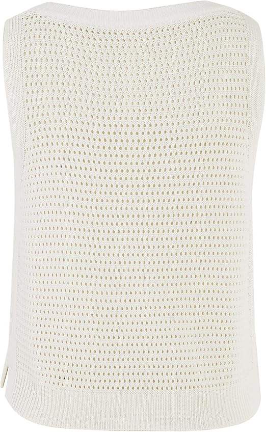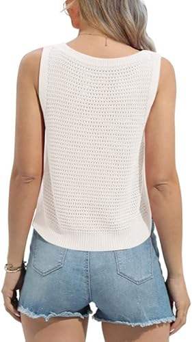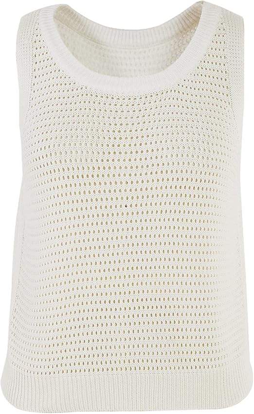 Camiseta sin mangas de punto a rayas de verano para mujer, suéter de cuello redondo de estilo dulce de longitud corta.