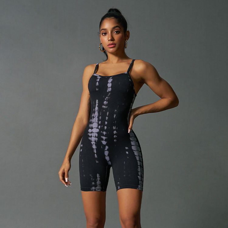 Monos cortos deportivos de una pieza con tinte de corbata para mujer, peleles de Yoga elásticos sin mangas sin costuras, ropa de Yoga para gimnasio