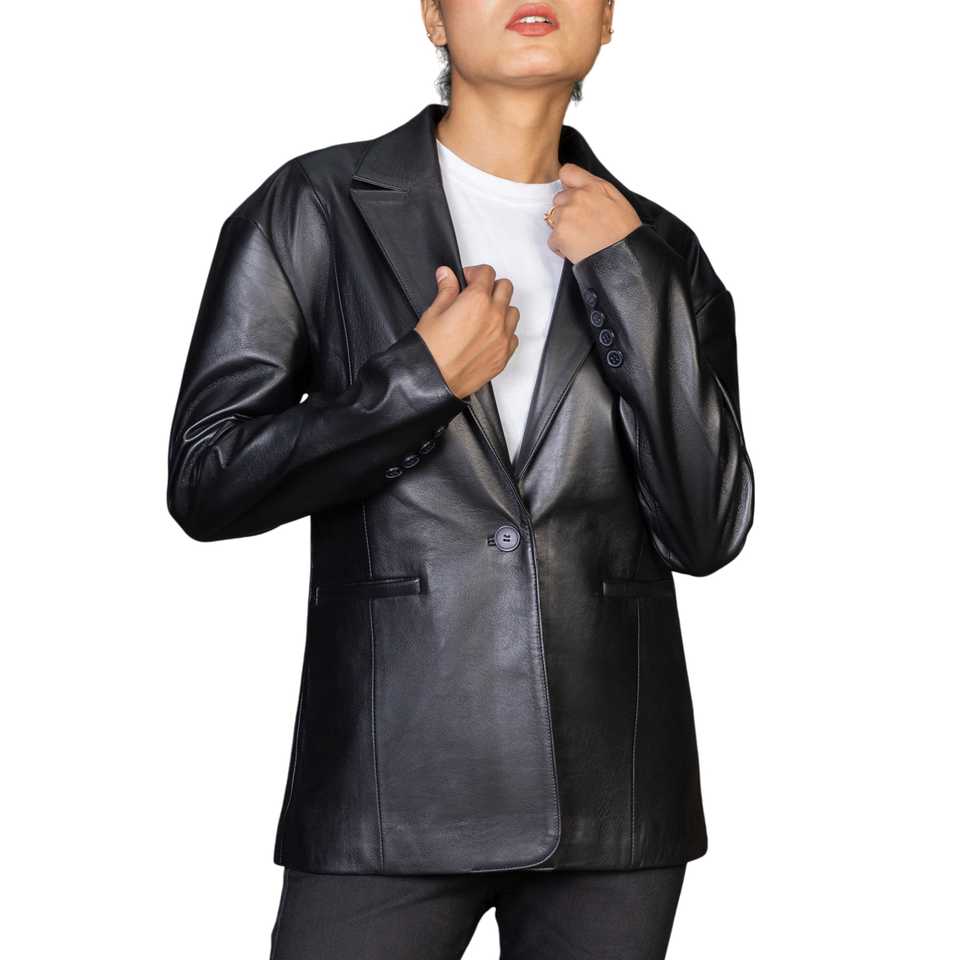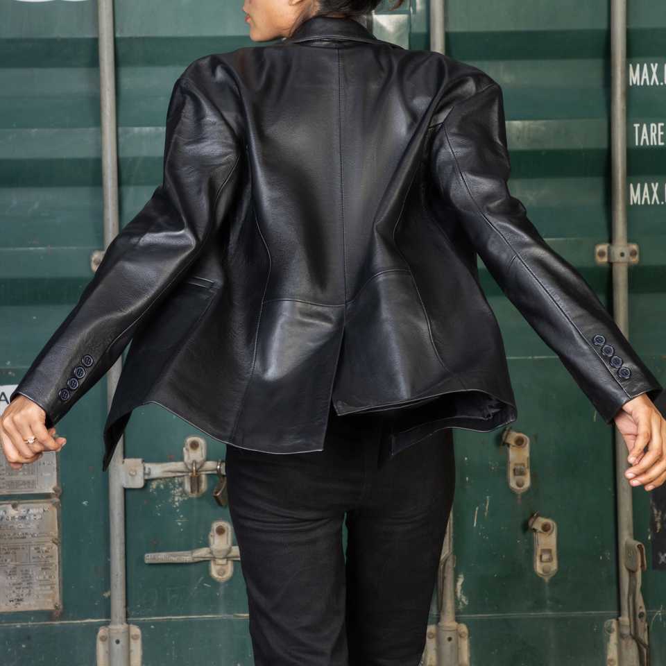 Palabras clave:Chaqueta de mujer hecha de cuero genuino