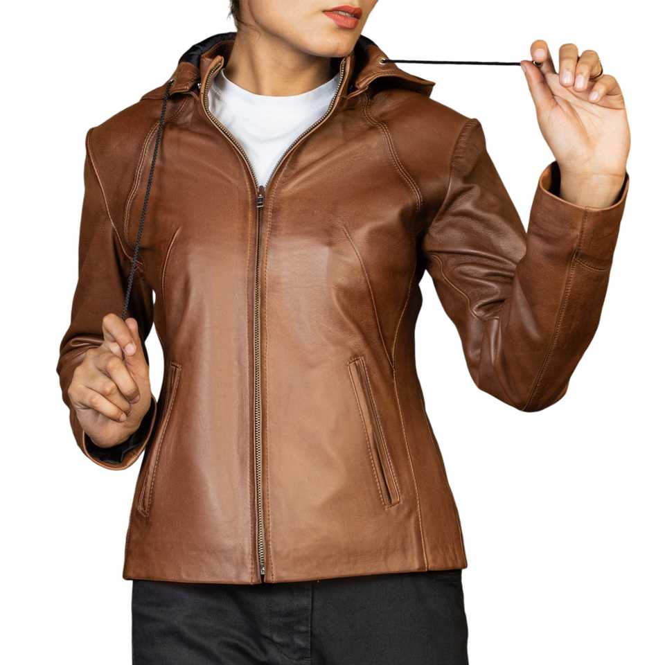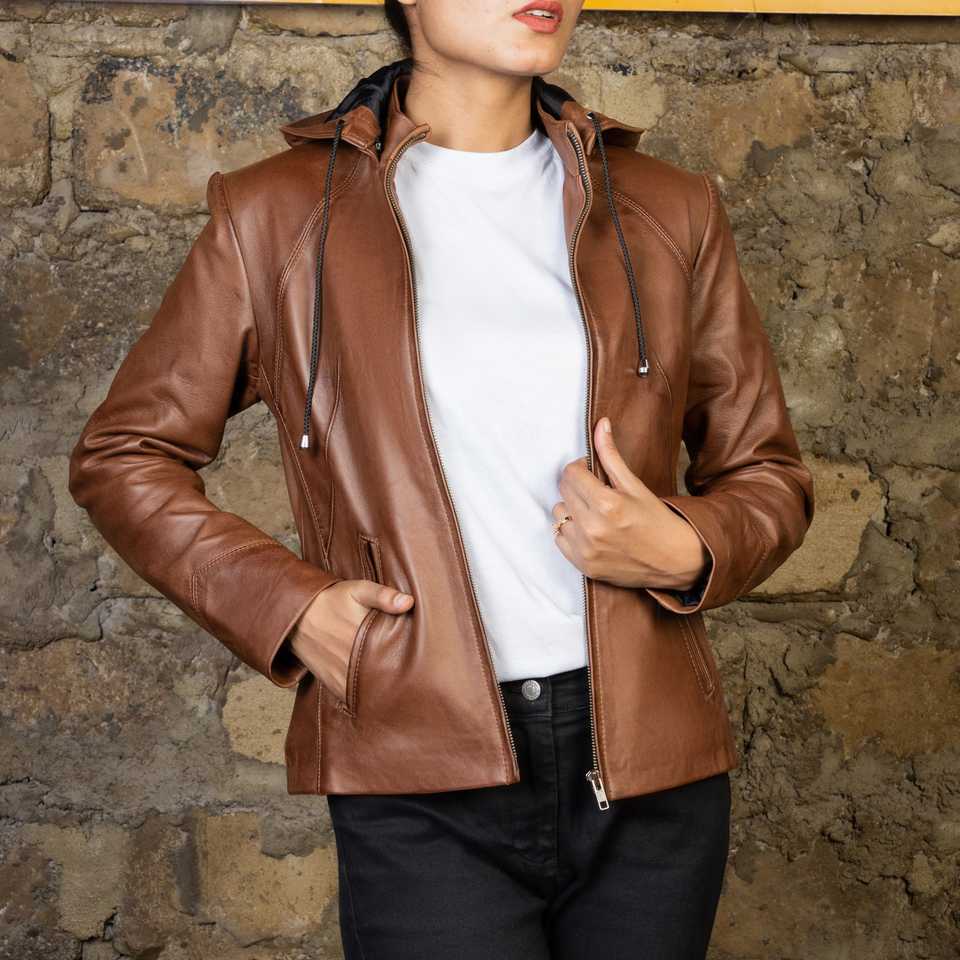 Palabras clave:Chaqueta de mujer hecha de cuero genuino