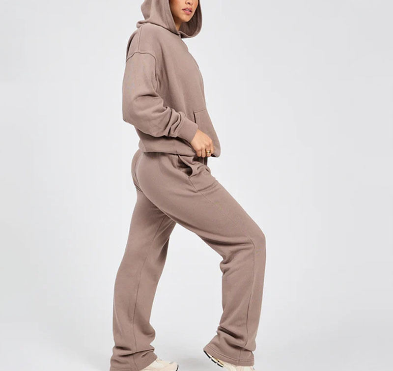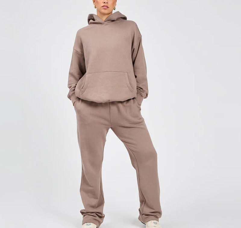 Conjunto de chándal para mujer, conjuntos de chándal holgados de algodón de rizo francés de peso pesado, pantalones de chándal acampanados de pierna ancha recta y conjunto de Sudadera con capucha