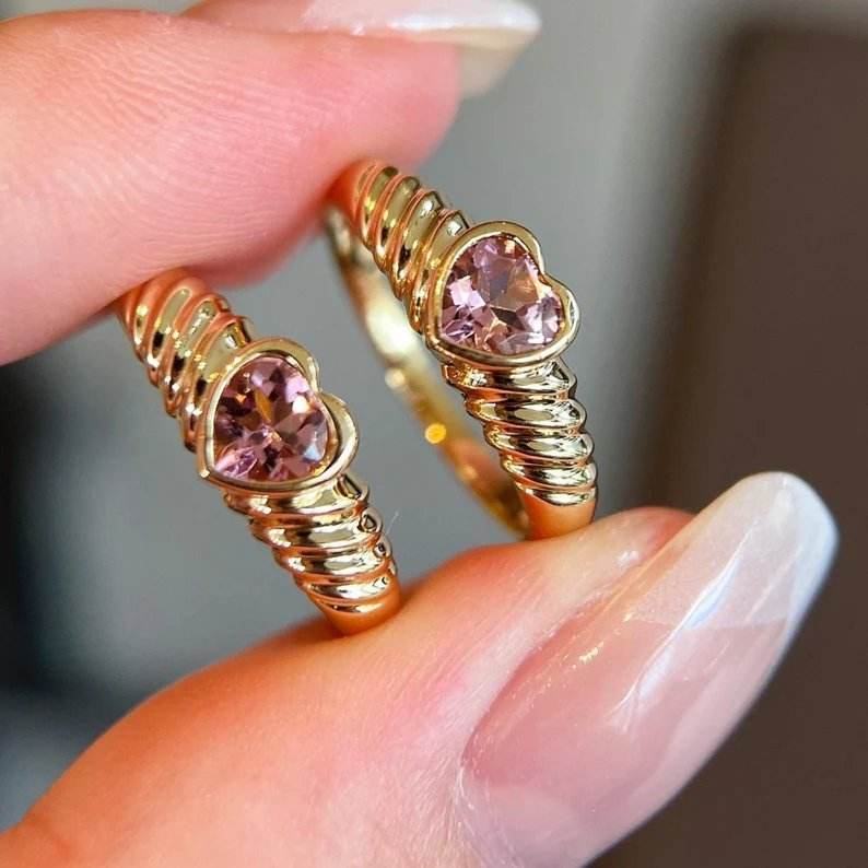 Anillo solitario de oro de 14 quilates a la moda para mujer, piedra de turmalina Rosa Natural, regalo de aniversario, celebración de piedra natal de octubre
