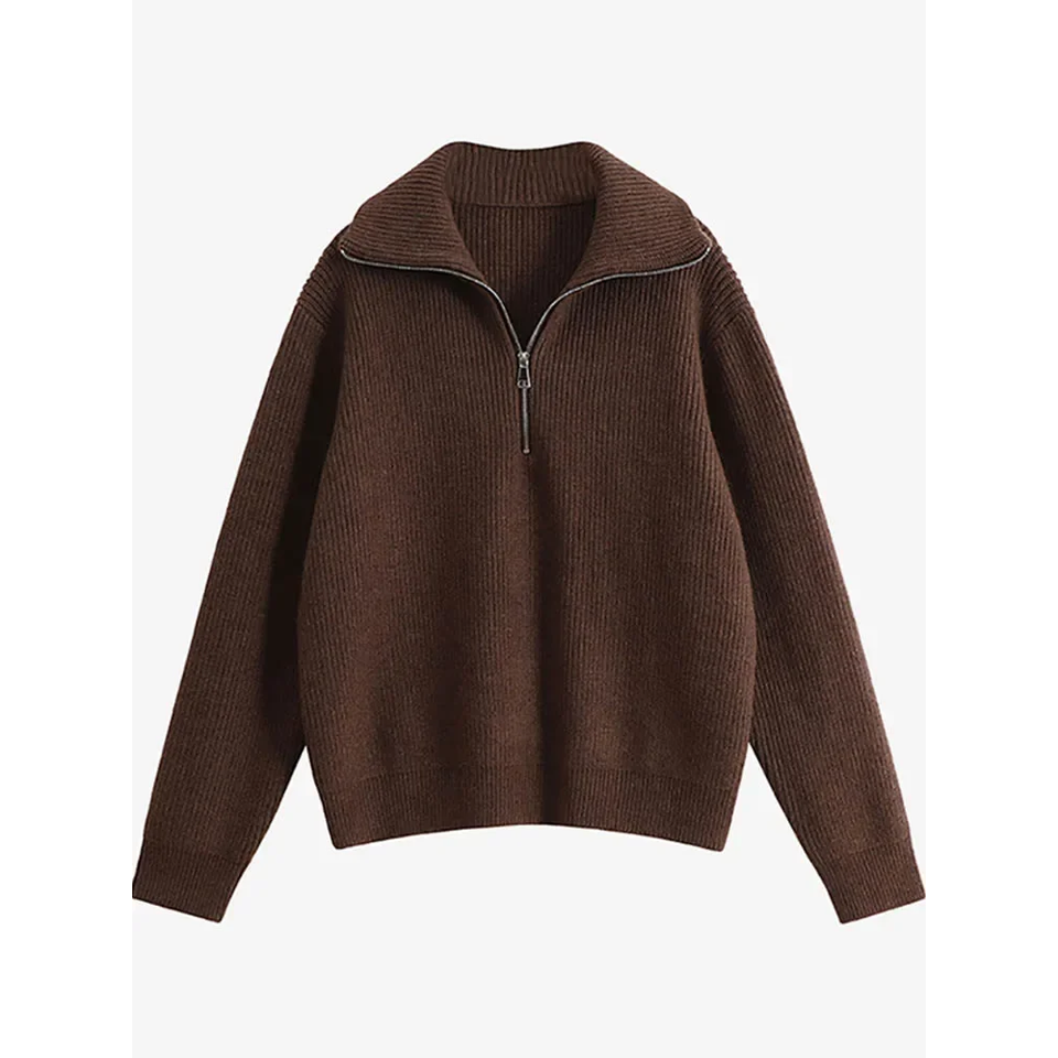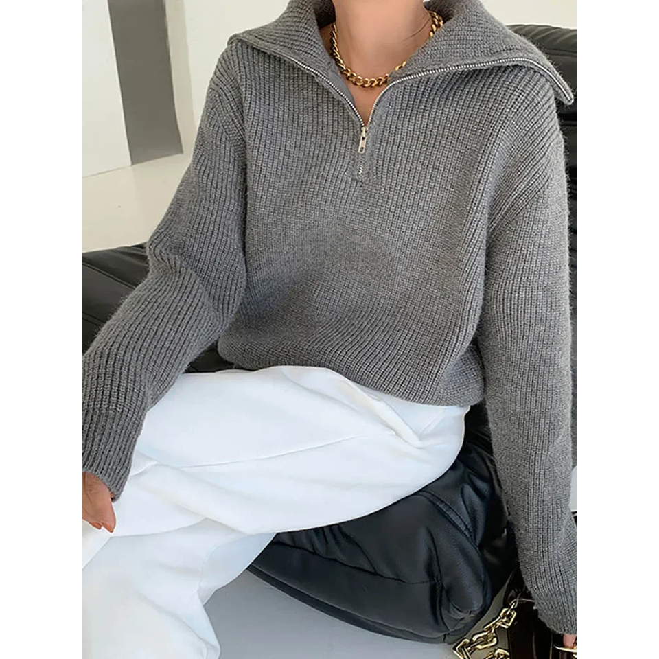 Cremalleras de cuello alto para mujer, suéteres de moda para mujer, jersey verde azul sólido, suéter de punto informal de manga larga para mujer, Invierno 2024