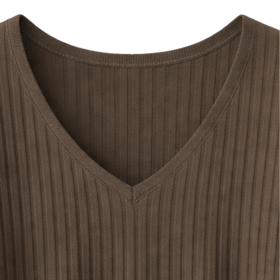Blusa de punto acanalado con cuello en V para mujer, manga corta, corte relajado, informal, de verano, suave y transpirable, para uso diario