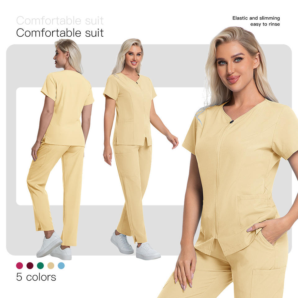 Women's V-Neck Scrub Set Moisture Wicking Hospital Uniforms 5 Colors S XXL