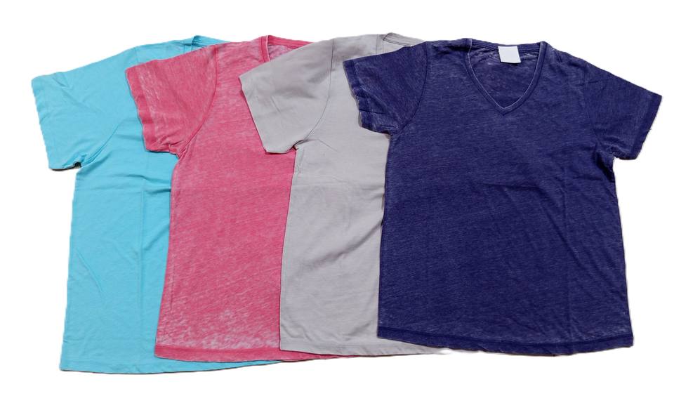 Camiseta de manga corta con cuello en V para mujer, nuevo diseño de moda informal de Color sólido, lavado Barnout
