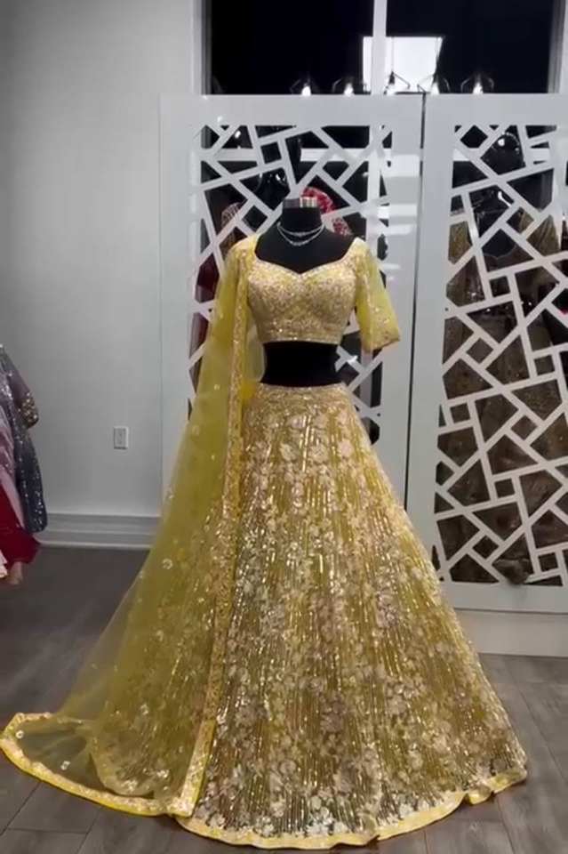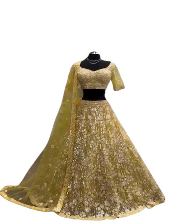 Lehenga Choli de terciopelo para mujer con trabajo de secuencia completa para bodas y ocasiones especiales disponible en hermosos colores