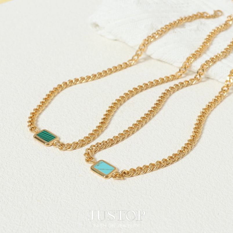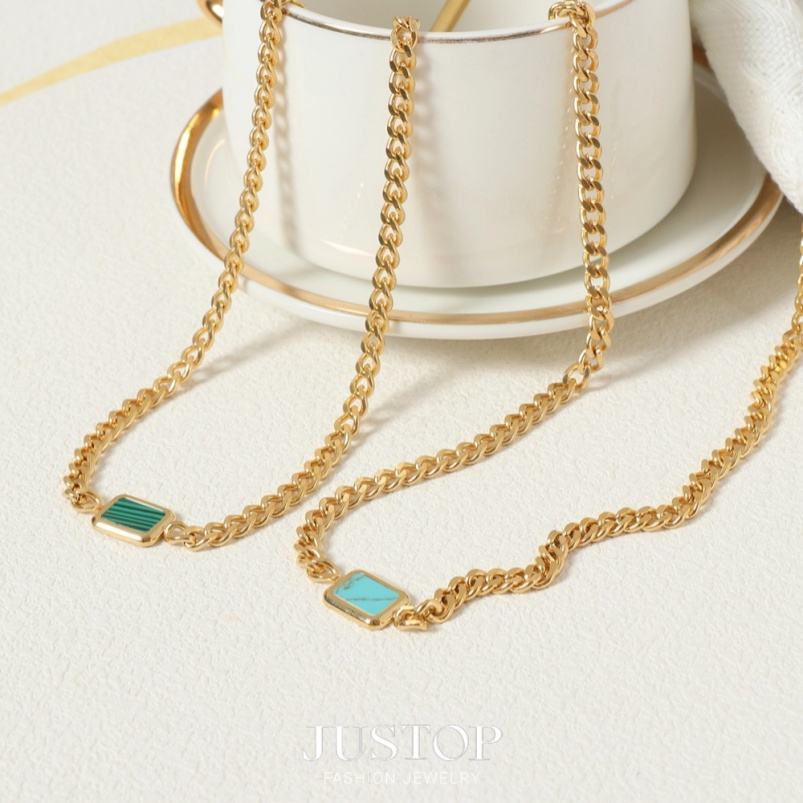 Collar de Cadena Cubana Vintage para Mujer, Chapado en Oro de 18K, Acero Inoxidable, Piedra Turquesa Natural, Dije de Esqueleto, Moda para Fiestas