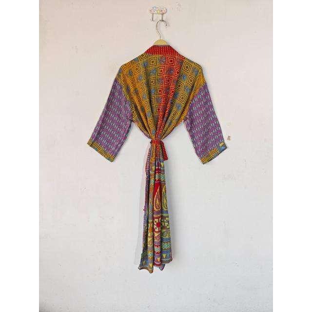 Albornoz tipo Kimono abierto Vintage para mujer, vestido de noche Sari de seda india con cinturón, talla XL térmica para la vida diaria para la temporada de primavera