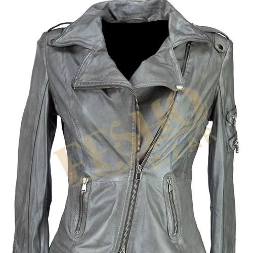Ladies Waxed Leather Jacket:Washed Leather Jacket