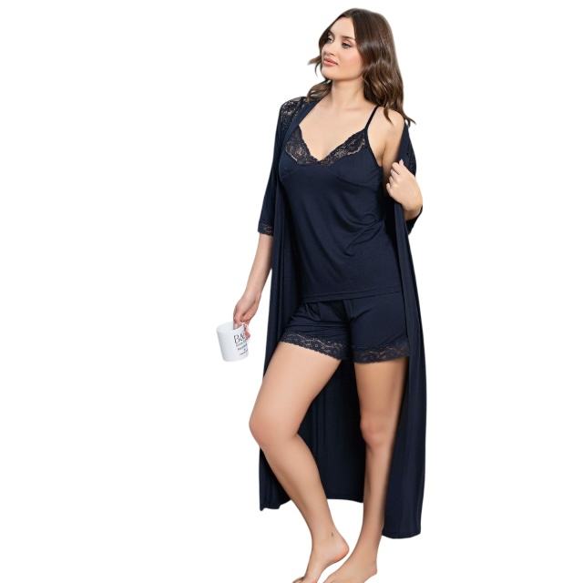 Conjunto de Pijama de Verano de Viscosa para Mujer, Camisón Capri, Túnica Corta, Cierre con Cordón, Tejido de Punto Suave y Transpirable, Ropa de Dormir