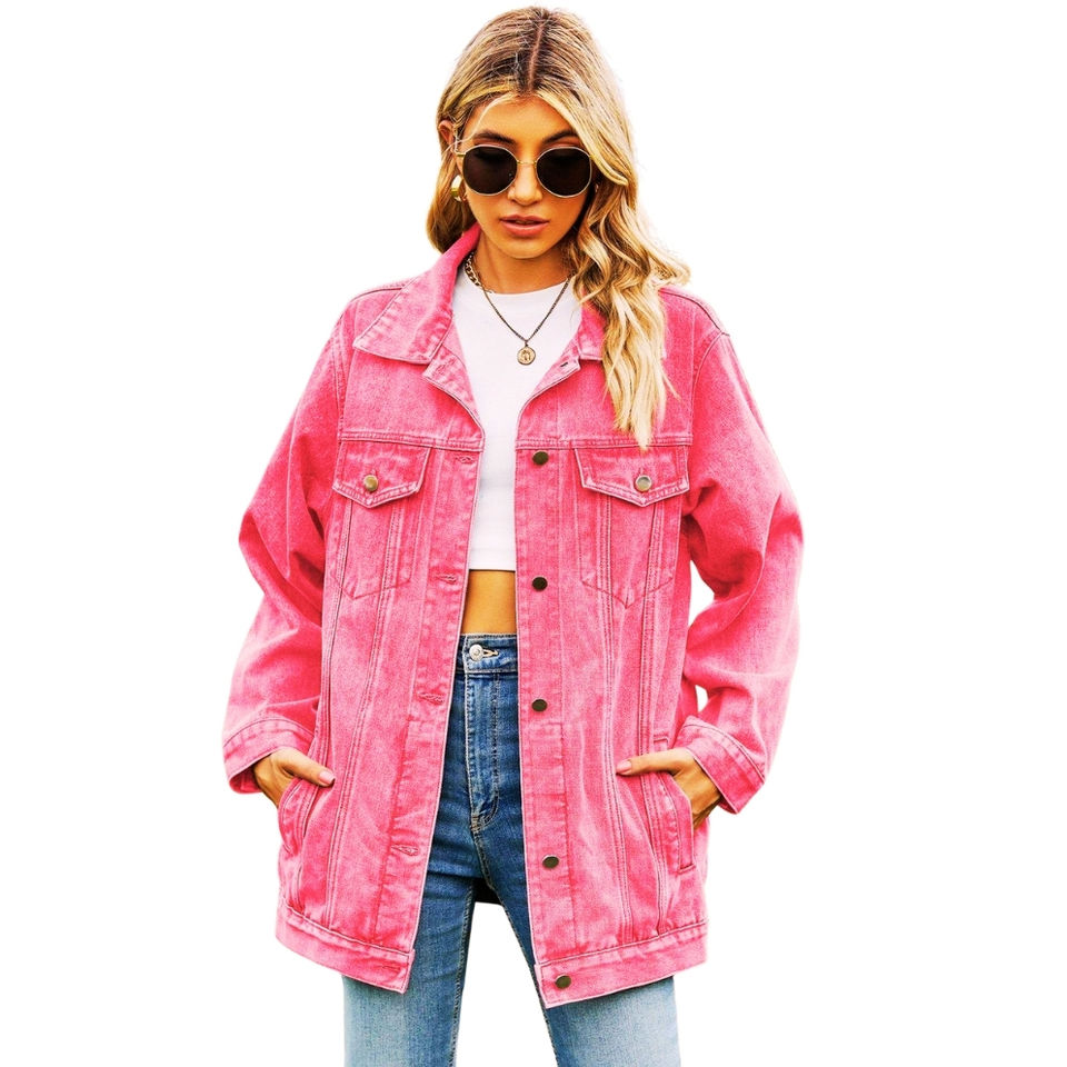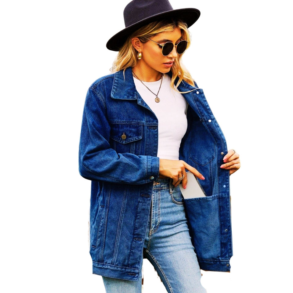 Chaqueta vaquera lavada de ajuste regular para mujer, ropa de calle informal, prendas de vestir exteriores de moda, abrigo vaquero de manga larga con botones