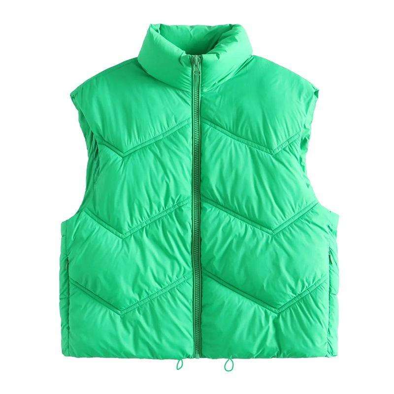 Chaqueta acolchada corta de Invierno para mujer, abrigo de burbujas sólidas con cremallera gruesa y diseño sin mangas, estilo bombardero tejido, cuello levantado