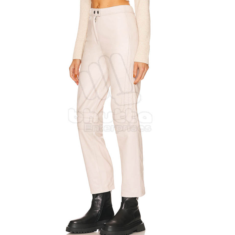 Pantalones de cuero de invierno para mujer, ropa de calle transpirable de cintura media, estilo informal plano teñido de Color blanco