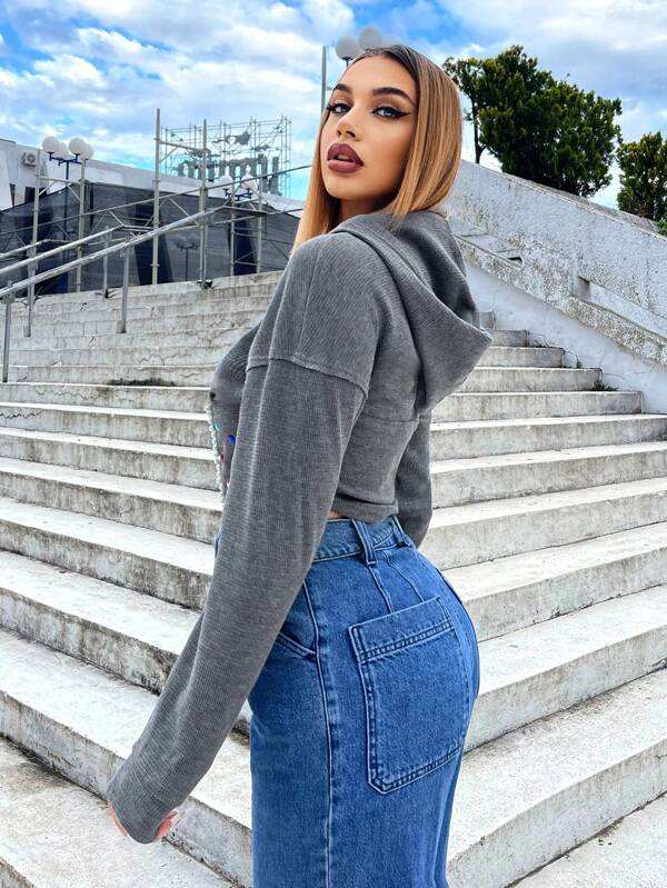 Nombre del producto:Sudadera Corta con Capucha para Mujer