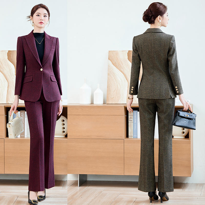Women's Wool Blazer Suit Set Polyester Fabric Anti-Wrinkle Commute Style