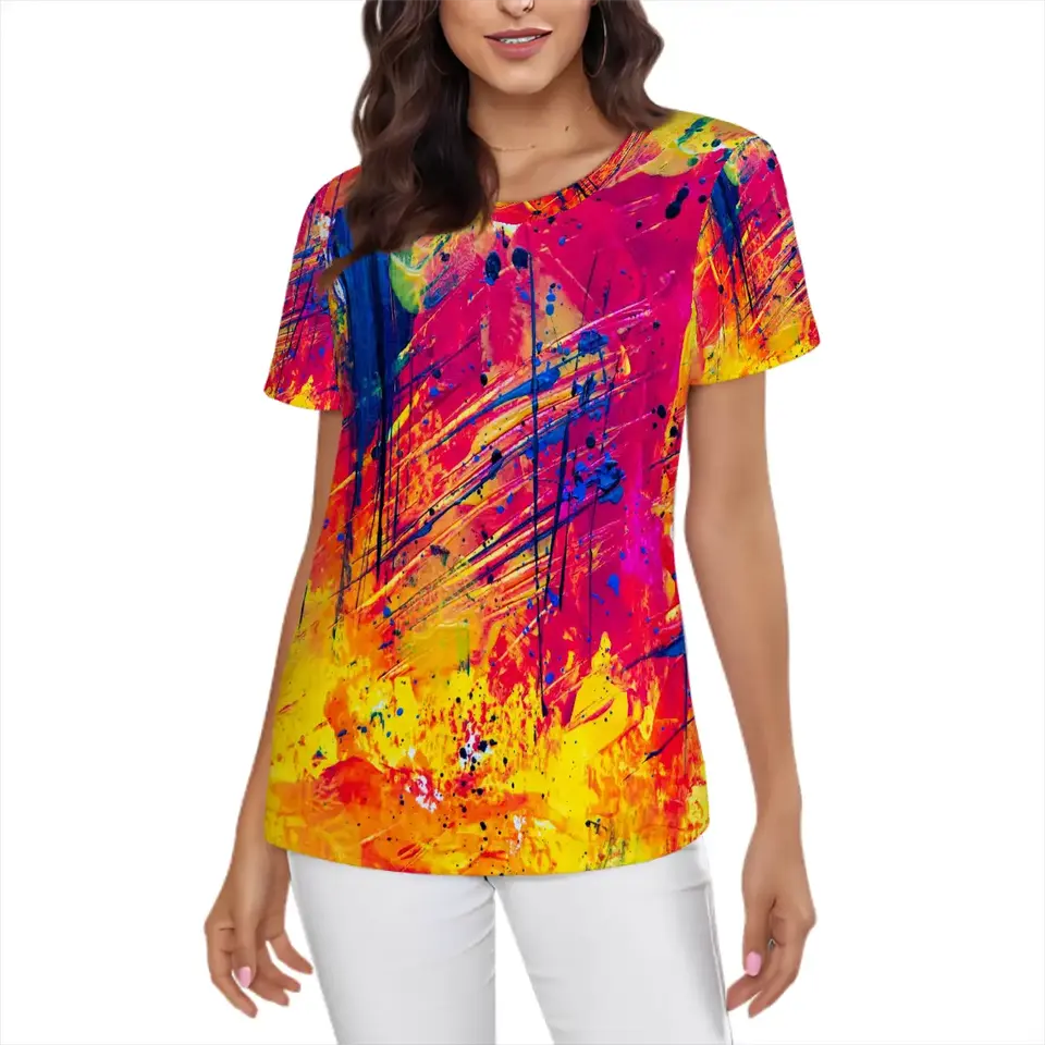 Camiseta de manga corta de algodón XL 100% para mujer, imagen personalizada, teñida lisa con botón de estrella, decoraciones con borlas, función antibolitas, suministro ODM