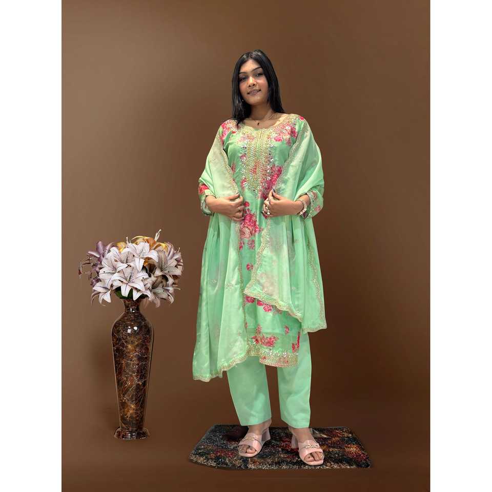 Conjunto de Top, Pantalón y Dupatta Amarillo para Mujer con Bordado y Trabajo de Lentejuelas, Talla M