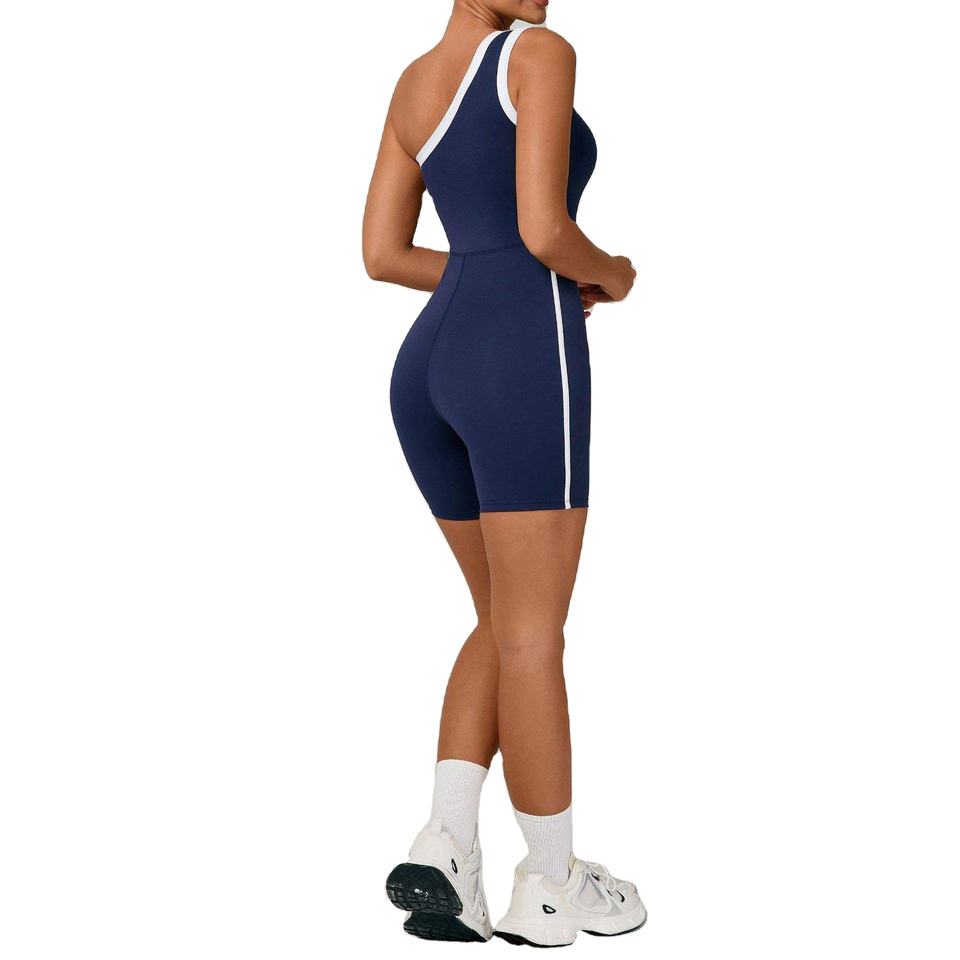 Mono Deportivo de Yoga para Mujer, de Una Pieza, con un Hombro Descubierto, Pantalones Cortos, Traje Deportivo Elástico para Fitness