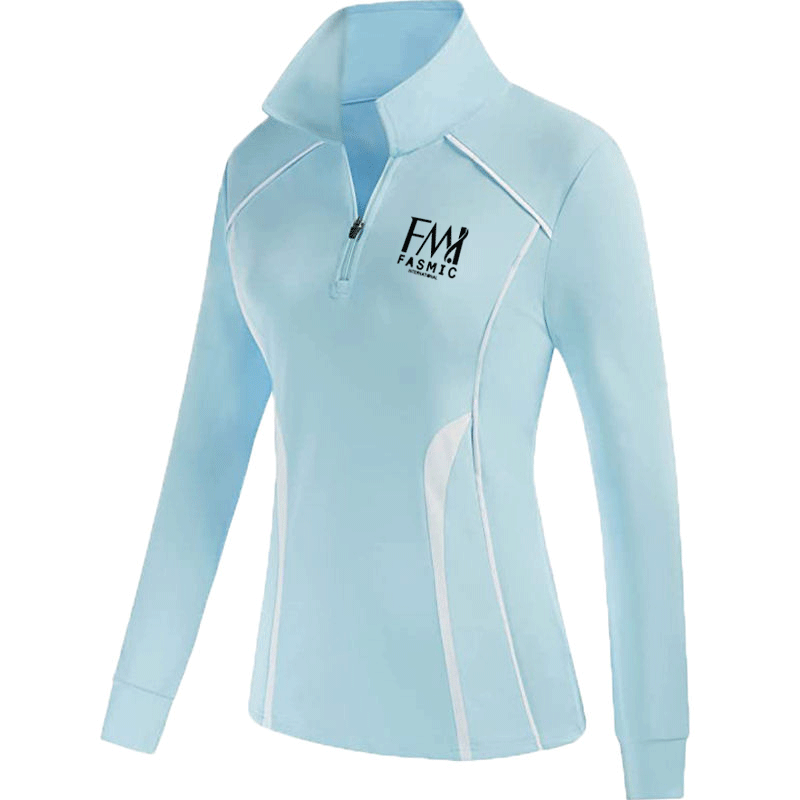 Cuello con cremallera para mujer Golf para camisetas de polo 100% algodón Manga larga Etiqueta privada Tallas grandes Jersey Tela