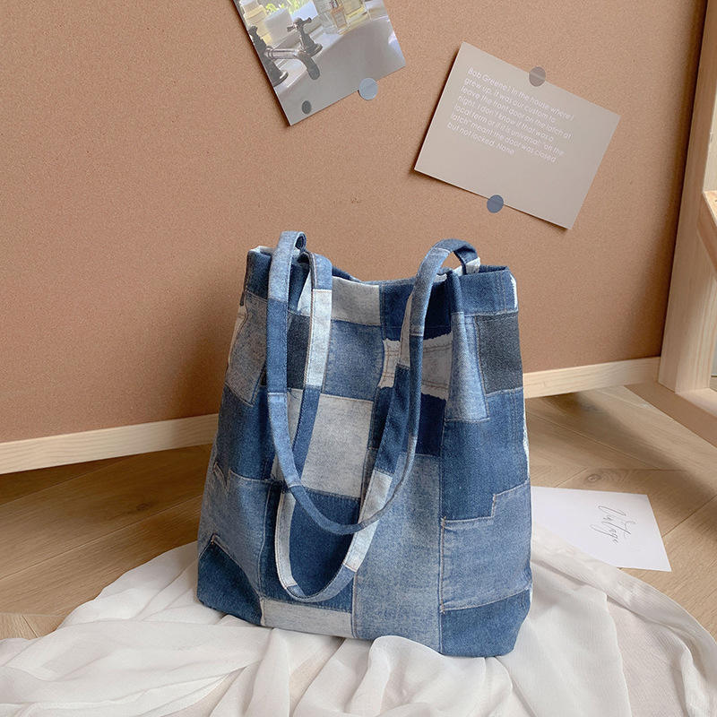Bolso de mujer 2024 nuevo bolso de mano de mezclilla de moda de tela bolso de hombro informal de gran capacidad