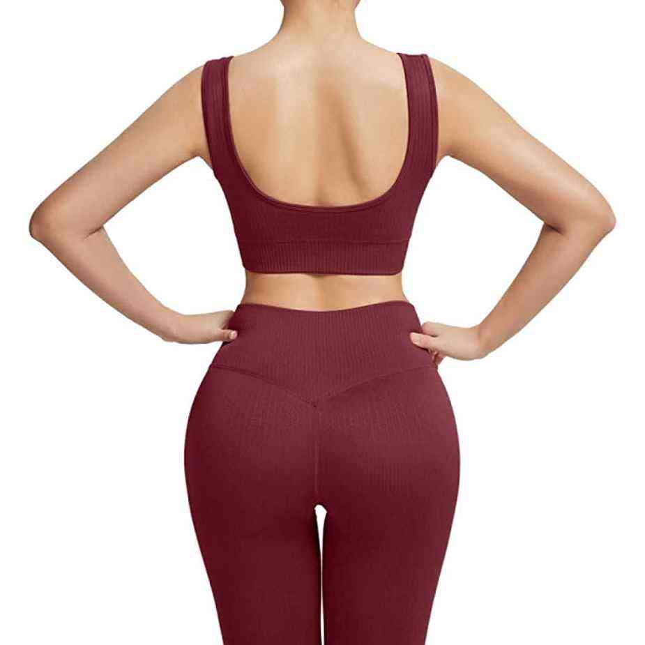 Conjunto de yoga para mujer con material transpirable y de soporte que ofrece comodidad flexible, ideal para entrenamientos activos y rutinas de yoga.