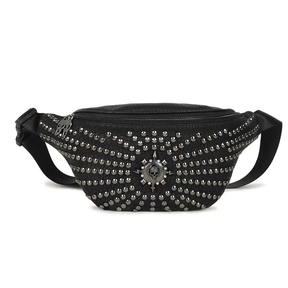Bolsos negros con tachuelas para mujer, riñonera de piel sintética, riñonera Y2K, riñonera para dinero, cinturón de cadera, estilo gótico, remache Vintage
