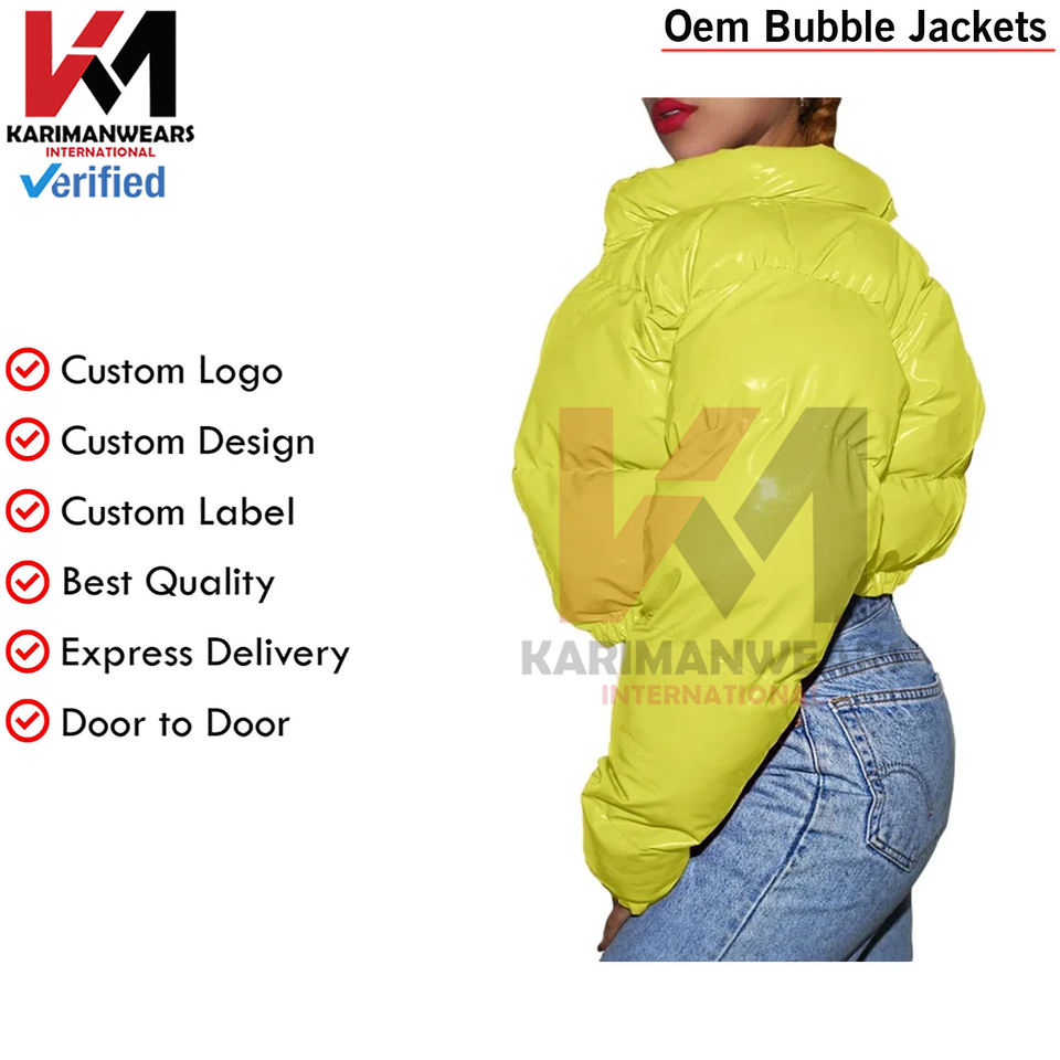 Chaqueta acolchada recortada para mujer, abrigos cortos hinchados de burbujas con cremallera brillante de invierno, ropa de abrigo cálida para clima frío, chaquetas de burbujas