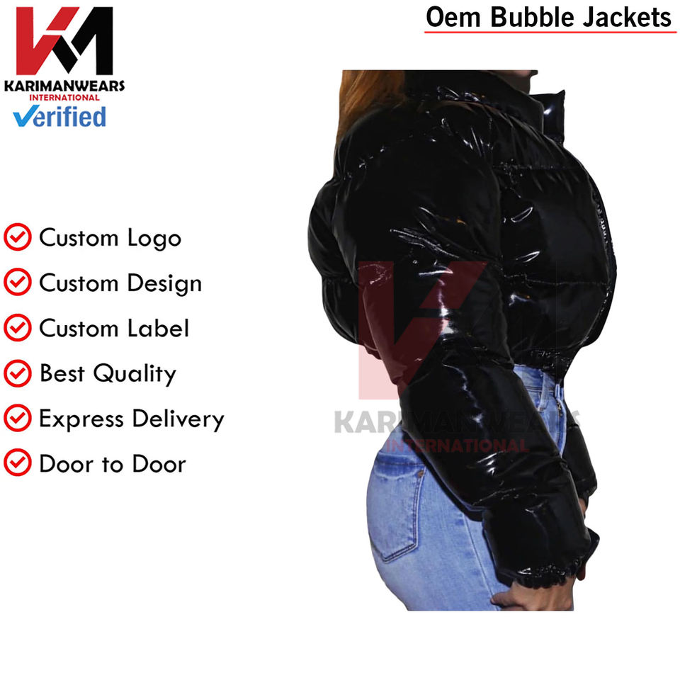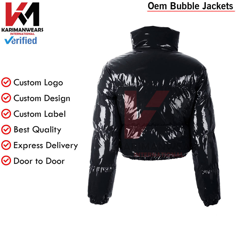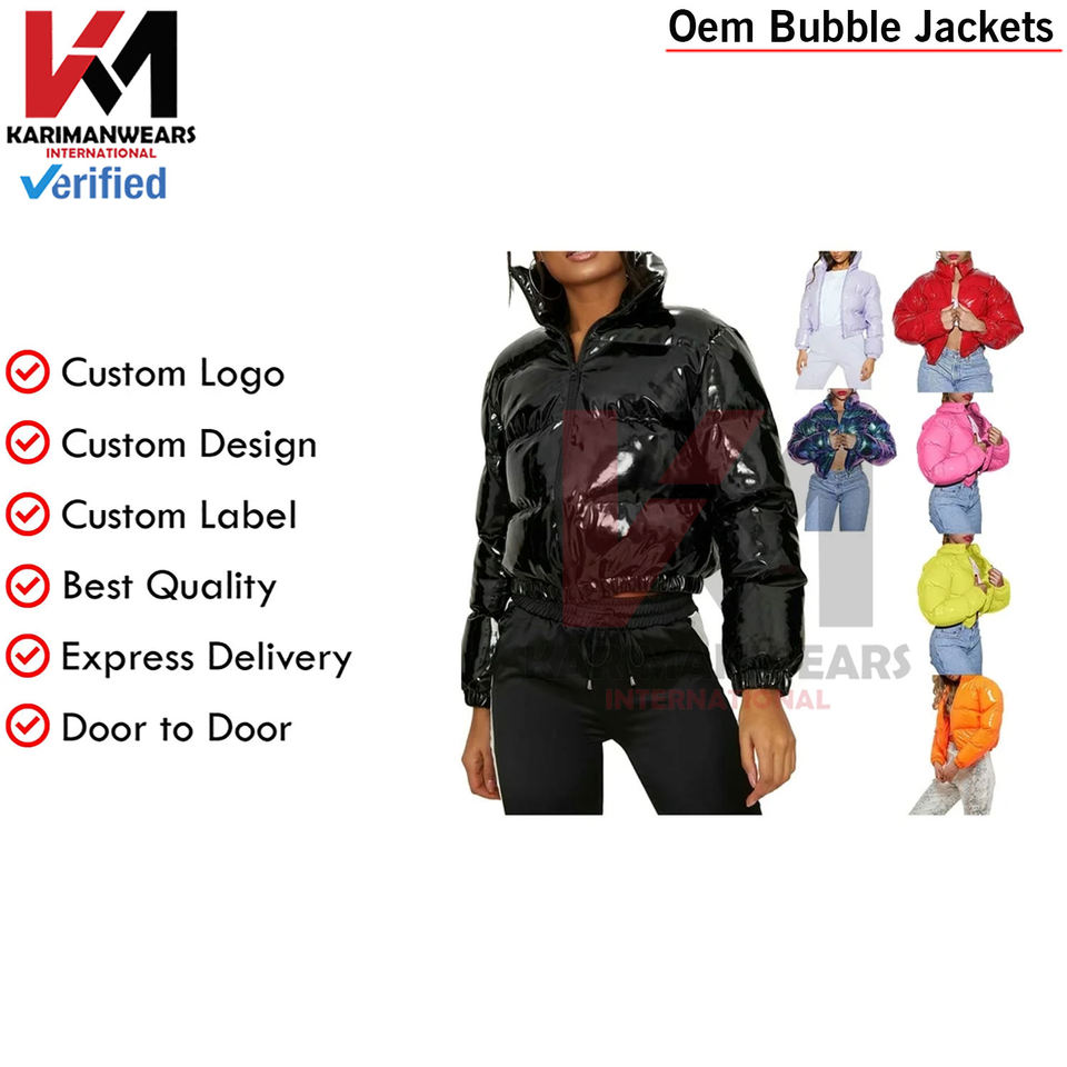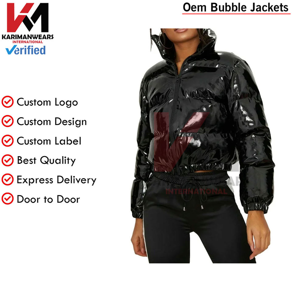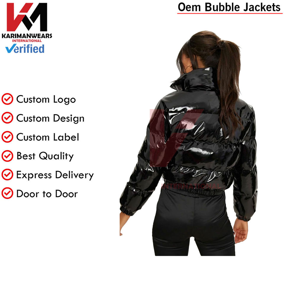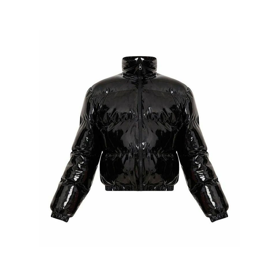 Chaqueta acolchada recortada para mujer, abrigos cortos hinchados de burbujas con cremallera brillante de invierno, ropa de abrigo cálida para clima frío, chaquetas de burbujas