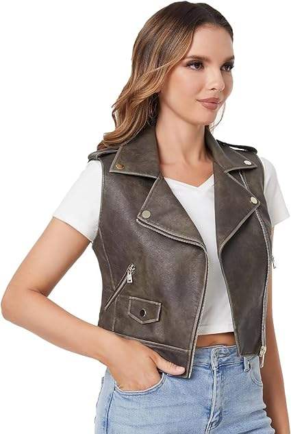 Chaleco de cuero personalizado para mujer: PU sin mangas de chaleco de motorista, ajustado, chaqueta de solapa de piel de oveja, fabricante y exportador