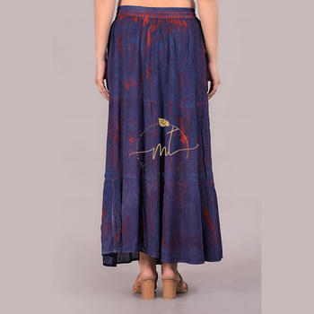 Falda Maxi Acampanada para Mujer, Cintura Elástica Media, Cordón Ajustable, Tejido Natural Transpirable, Estampado a Mano, Estilo Casual, Corte en A