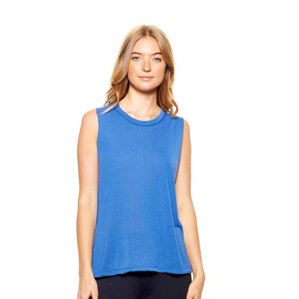 Camisetas sin mangas fluidas y transpirables para mujer, color azul