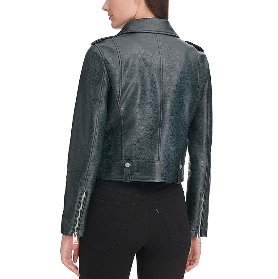 Chaqueta de motorista verde oscuro de cuero genuino para mujer, abrigo ajustado para Moto, cremallera frontal, manga larga, ropa de abrigo elegante vanguardista