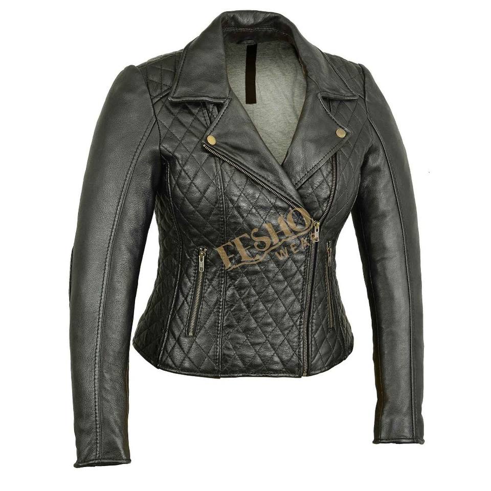 Genuine Leather Jacket:Women Leather jacket diamond quilted style