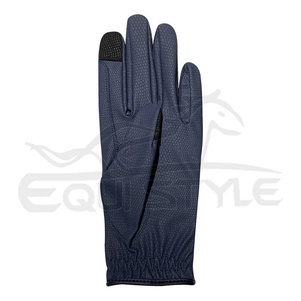 Guantes de equitación para mujer Correa de diamantes de imitación azul profundo OEM Proveedor al por mayor Guantes ecuestres de Doma con pantalla táctil