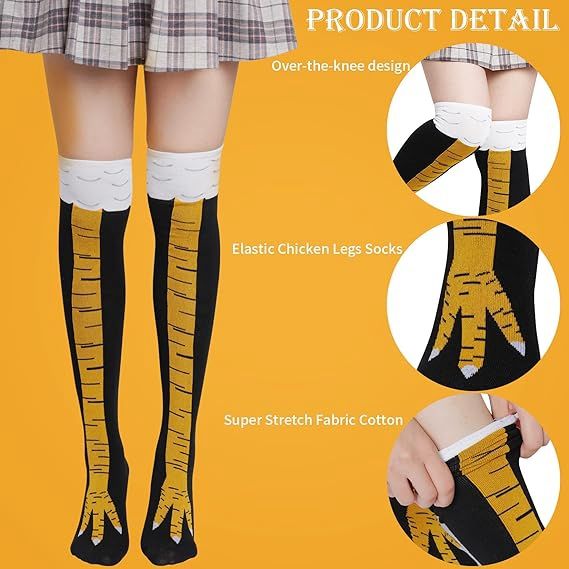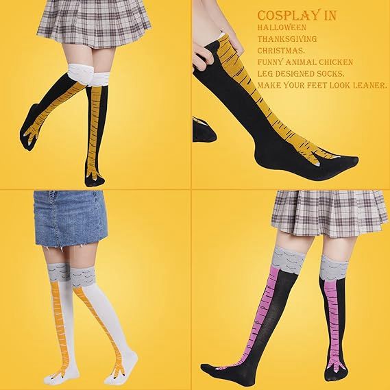 Calcetines Divertidos de Pollo hasta la Rodilla para Mujer, Calcetines Originales con Patas de Animal, Calcetines Novedosos y Extravagantes con Patas de Pollo para Chicas